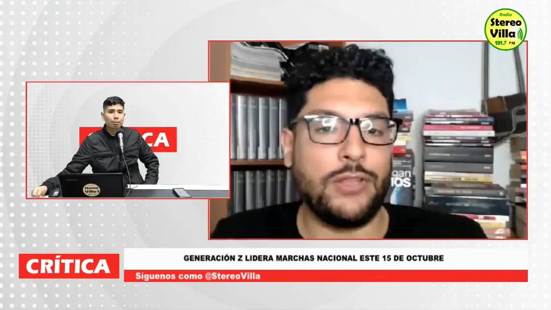 El sábado 11 de octubre, el programa Crítica de Radio Stereo Villa abordó la creciente tensión política que atraviesa el país tras la vacancia de Dina Boluarte y la reciente asunción de José Jerí como presidente de la República. En entrevista con el activista social Jorge Calmet, vocero del colectivo Jóvenes Líderes para el Perú – Generación Z (JLP - GZ), se adelantaron los preparativos de la marcha nacional convocada para este miércoles 15 de octubre, una movilización que busca expresar el rechazo ciudadano al nuevo mandatario, cuestionado por presuntos actos de corrupción y enriquecimiento ilícito.