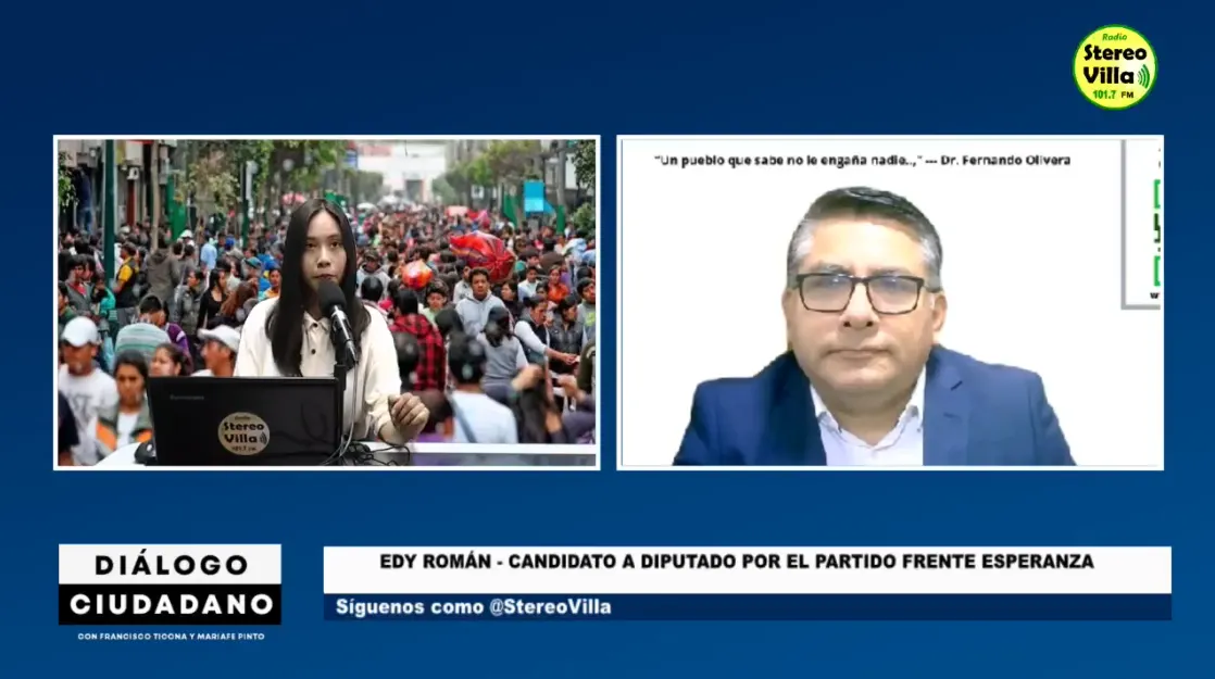El candidato a diputado por el partido Frente Esperanza, Edy Alberto Román Ccorahua, participó en el programa ´Diálogo Ciudadano´, donde expuso sus principales propuestas de cara a las elecciones generales de 2026, con énfasis en la lucha contra la inseguridad ciudadana, la corrupción y la mejora de los servicios públicos.