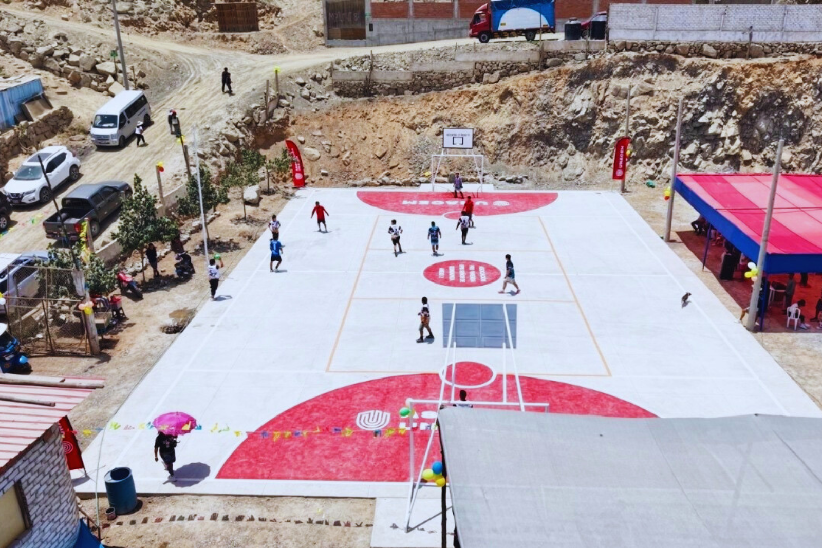 FAMILIAS DE QUINUAPATA CELEBRAN INAUGURACIÓN DE LOSA DEPORTIVA
