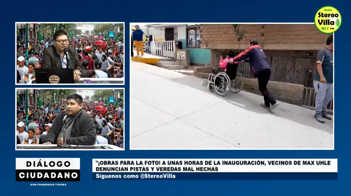 A pocos días de la inauguración de las pistas y veredas en la Ampliación Max Uhle, en Villa El Salvador, los vecinos de la zona han alzado su voz de protesta ante la calidad de los trabajos ejecutados. Según informaron en el programa `Diálogo Ciudadano` de Stereo Villa, se han identificado más de 15 deficiencias en la obra, como rampas mal diseñadas, buzones tapados, veredas inconclusas y desniveles que afectan la transitabilidad, especialmente de personas con discapacidad.