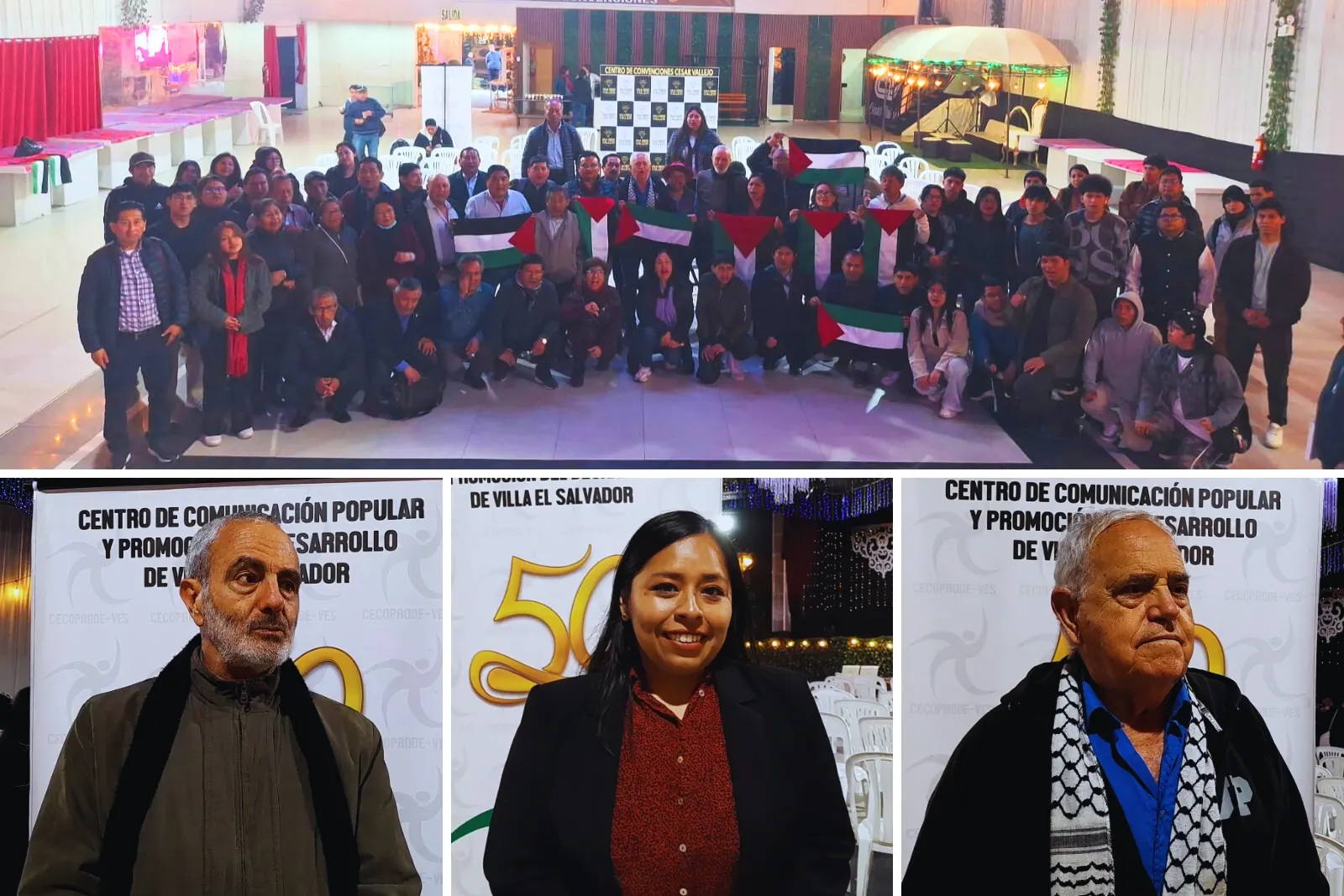 El foro “Palestina: Estado Libre y Soberano” se realizó el jueves 2 de octubre en el Centro de Convenciones Salas César Vallejo, en Villa El Salvador. El evento reunió a voces académicas y sociales que analizaron la situación en Medio Oriente y la necesidad de reflexionar sobre las implicancias humanitarias del conflicto. Entre los ponentes estuvieron el politólogo Farid Kahhat; la conductora de Nuestra Voz al Aire, Lucero Echevarría, y el primer alcalde de Villa El Salvador, Michel Azcueta.