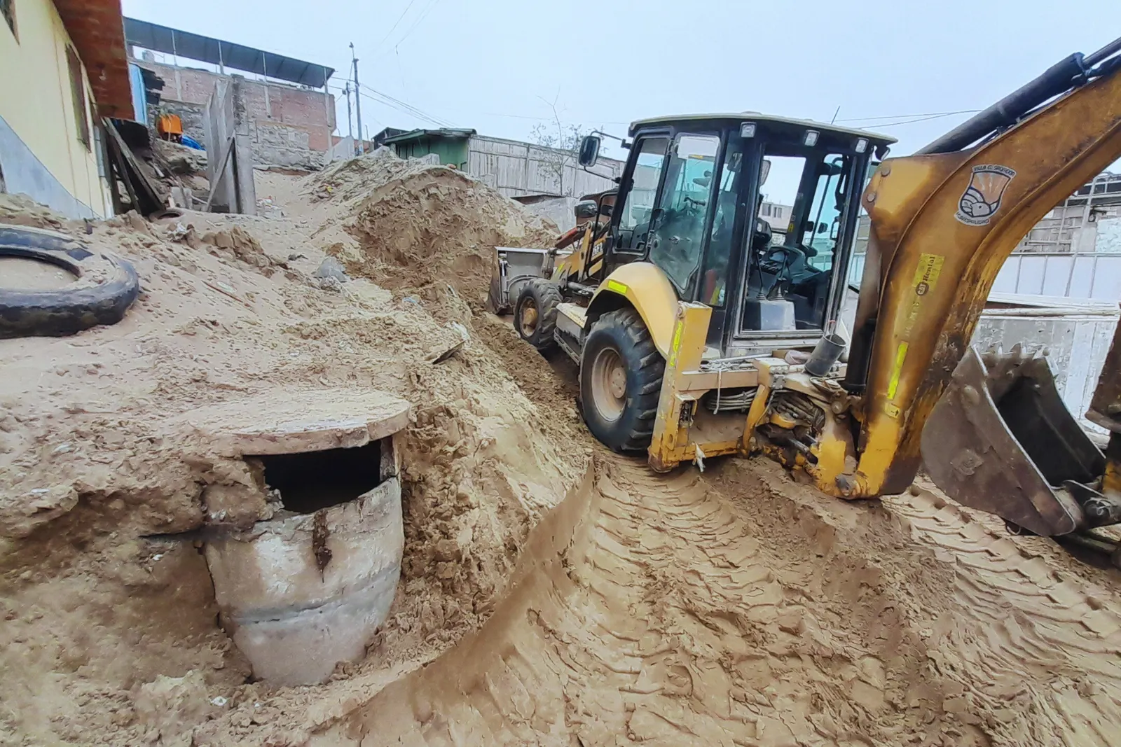 Los pobladores aseguran que la falta de supervisión ha generado riesgos sanitarios y estructurales. En las imágenes registradas por Radio Stereo Villa, se observa un buzón de desagüe abierto, agua residual expuesta y una vivienda —de color celeste— prácticamente suspendida en el aire, debido a la remoción del terreno. Los vecinos temen que la situación derive en accidentes o enfermedades, sobre todo entre niños y adultos mayores que viven en el sector.