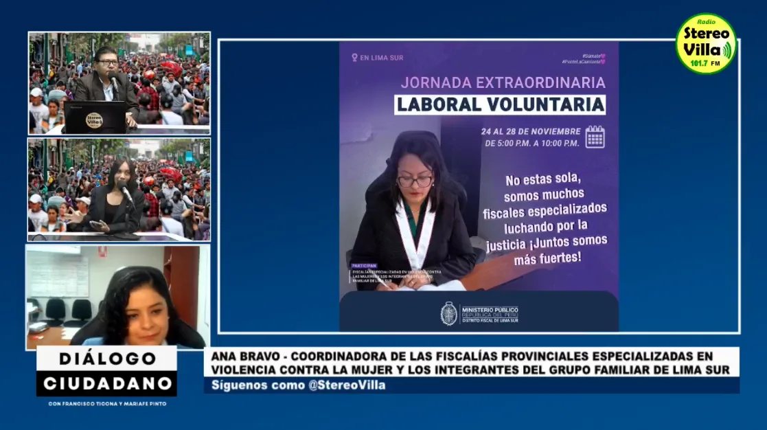 En entrevista para el programa ´Diálogo Ciudadano´ contó con la participación de Ana Isabel Bravo Sánchez, coordinadora de las Fiscalías Provinciales Especializadas en Violencia contra la Mujer y los Integrantes del Grupo Familiar de Lima Sur.