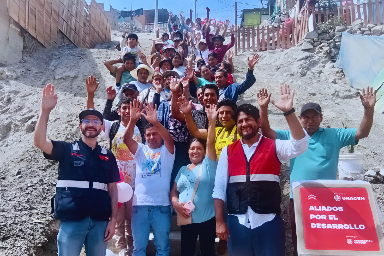 Vecinos del UPIS Corazón de Jesús, en Manchay, inauguraron dos tramos de escaleras comunitarias gracias a un trabajo conjunto entre la comunidad y la Asociación UNACEM. Mientras los vecinos aportaron mano de obra, la asociación contribuyó con la donación de cemento y agregados para hacer posible la obra.