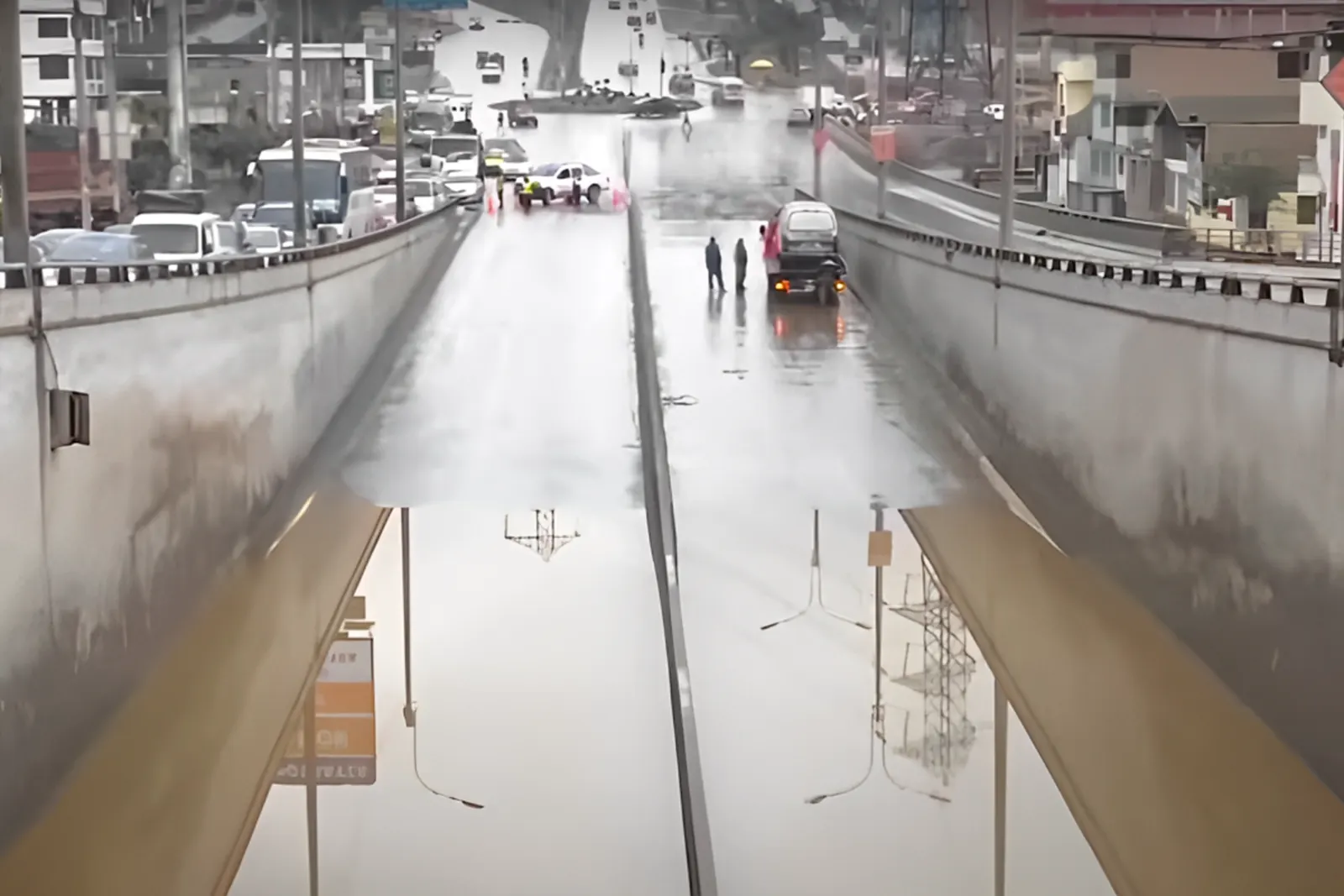 Asimismo, el bypass ubicado en el cruce de las avenidas Pachacútec y 26 de Noviembre, en Villa María del Triunfo, donde se ha tenido que cerrar la vía por el gran volumen de agua acumulada. Un vehículo de serenazgo permanece en la zona para evitar el ingreso de autos, mientras los conductores se ven obligados a desviar su ruta por las vías auxiliares, generando mayor congestión.